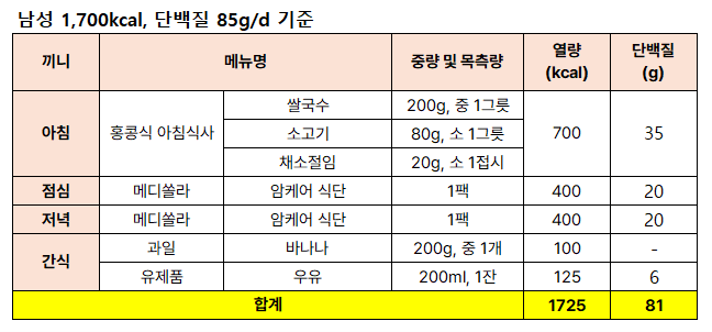 [남/여 하루 식사구성 예시]