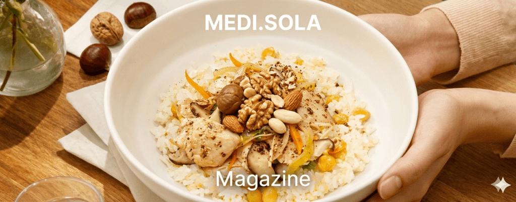 앞서 제시한 영양 관리 원칙을 실제 식사에 적용할 수 있도록, 메디쏠라 [암케어] 식단은 식품의약품안전처 특수의료용도식품(암환자용 식단형식품)의 영양기준을 충족하도록 설계되었어요. 지중해식 식단의 영양 원리를 바탕으로 탄수화물, 단백질, 지방의 비율을 5:2:3으로 균형 있게 구성하였으며, 단백질은 전체 열량의 약 20% 수준으로 설정하여 충분한 단백질 섭취가 가능하도록 했어요. 또한 오메가-3 지방산을 포함하여 항암 치료 과정에서의 염증 반응 관리에 도움을 줄 수 있도록 고려했어요.