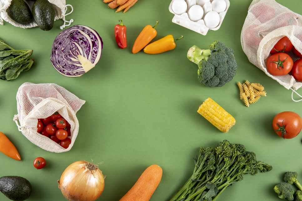 영양 가득한 야채와 단백질 가득한 곡물을 담은
