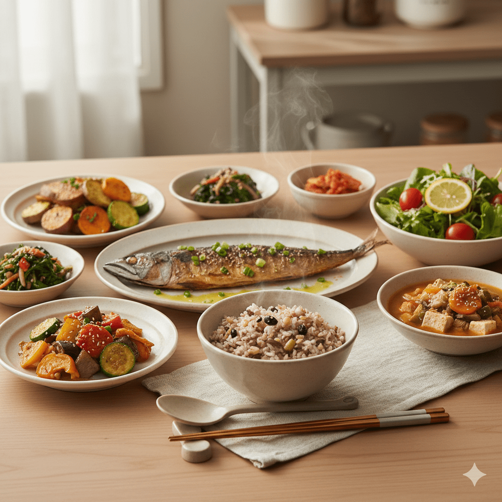 지중해식 식단을 그대로 따라 할 필요는 없어요. 중요한 것은 방식과 기준을 가져오는 거예요. 흰쌀밥 대신 잡곡밥을 선택하고, 튀김보다는 들기름이나 올리브오일을 활용하는 조리 방식으로 바꿔보세요.